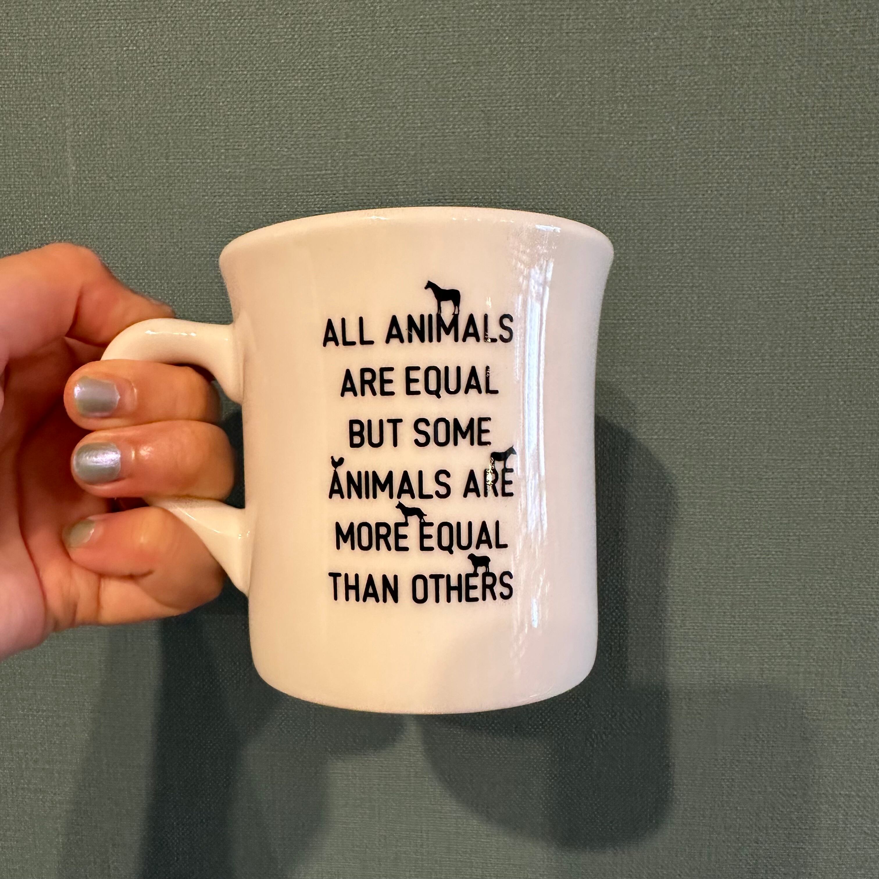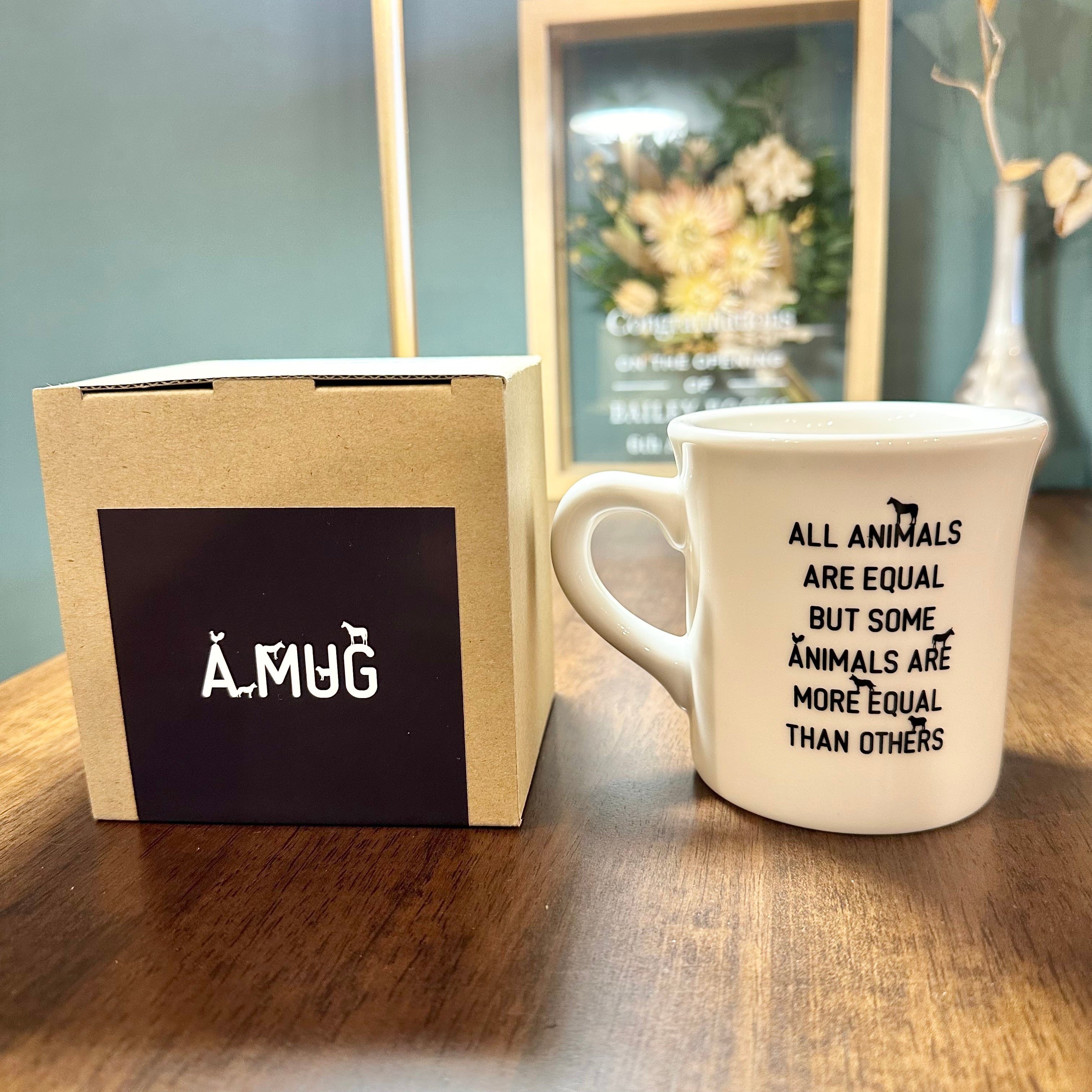 ジョージ・オーウェルの名作『動物農場』(アニマルファーム)のオリジナルマグ。